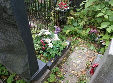 Территорию участка мы застелили геотекстилем, у подножья одного из гранитных памятников установили надгробную плиту.