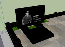 В итоговой версии памятника на надгробной плите появилась эпитафия написанная специально для Виктора. Земля прикрыта мульчей коры сосны.