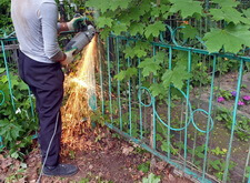 Приехав вновь на кладбище, мы взялись за очистку места захоронения от посторонних элементов: срезали болгаркой старое ограждение; пропололи сорную траву, а также разровняли землю, готовя её к покрытию бетонной плиткой.