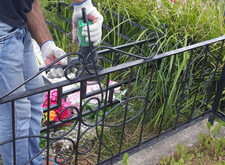 Для начала необходимо зачистить ограду от старой краски. Мы выполняем эту работу механическим путем.