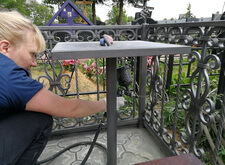 Покрываем грунт слоем кузнечной краски. Из-за сложности работы и неудачной погоды вместо планируемых трёх дней мы потратили на покраску практически неделю. Тем не менее заказчик остался очень доволен проделанной работой и её качеством. В свою очередь мы сообщили клиенту, что данное покрытие продержится на металле от пяти до семи лет.