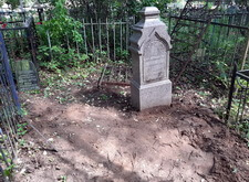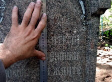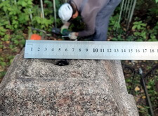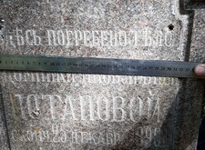 Для начала мы взялись за измерения памятника: нам предстояло изготовить табличку на лицевую сторону надгробья, а верх вновь украсить православным крестом.