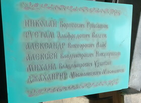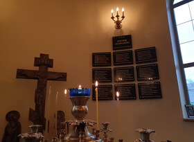 В день монтажа мы доставили готовые таблички в храм, предварительно сняв со стены висевшую там мраморную доску.