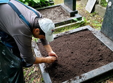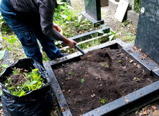 Тщательно утрамбовываем землю в цветниках, придавая могилам ухоженный вид.