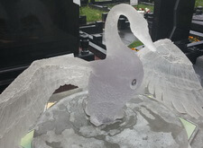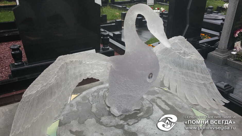 Очень сложная и интересная работа по созданию уникального мемориального комплекса. Он на столько уникальный и запоминающийся, что если на Троекуровском кладбище (богемное кладбище Москвы), где установлен этот комплекс, вы спросите у любого служащего где находится могила с лебедем, вам легко покажут дорогу.