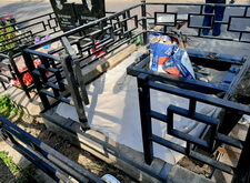 Затем мы приварили стальные полосы к опорам ограждения, тем самым создав необходимый для гранитной брусчатки периметр.